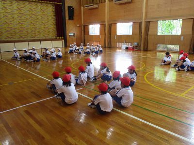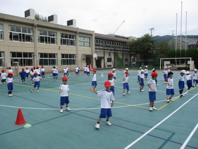 1・2年生の団体演技の練習です。