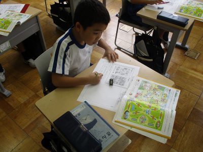 引き算に苦戦しながらも、必死に頑張っていました。