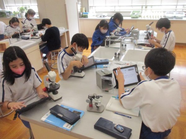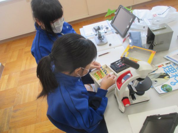 今回は、学習後の1時間を使って、顕微鏡を使い慣れようという時間にしました。