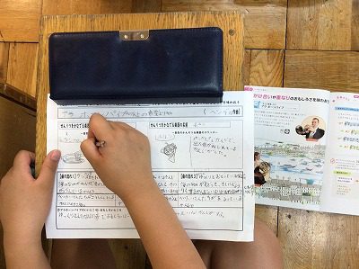 昼根っこタイムは「思考力ドリル」を行いました。今日は「説得」に挑戦します。お母さんに、遊園地に連れて行って欲しい私が、どのようにすれば日曜日に遊園地へ行けるのかを考えます。