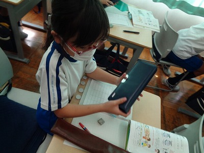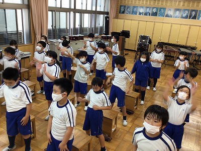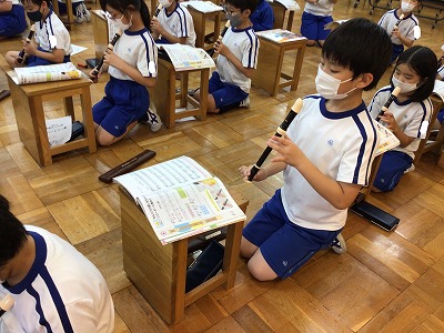 もう一つの学習は「♪レッツゴーソーレ」の「ドレミ(階名)」を確かめ、リコーダーの指の動きを練習しました。