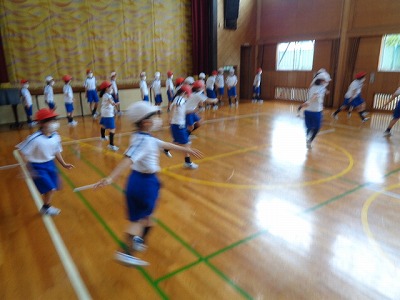 「♪陽気なかじや」の歌に合わせて、ひざや手を使った動きを楽しみました。