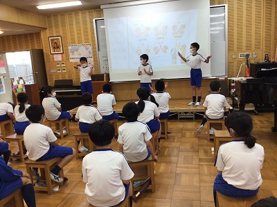 朝晩は過ごしやすいですが、昼間は蒸し蒸しと感じます。空調や水分補給、上着の着脱で体感調節を励行し、明るく元気に活動しました。