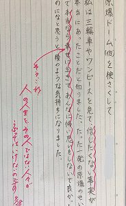 “たった一つの爆弾”が及ぼした、心が痛むような事実を目の当たりにした、5年生の受けた印象は、本文中に出てくる主人公“綾”が感じた「頭がくらくらしてきた」「うちのめされるような気持ち」「気が遠くなりそう」の表現が、自分に置き換えられる瞬間でした。