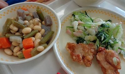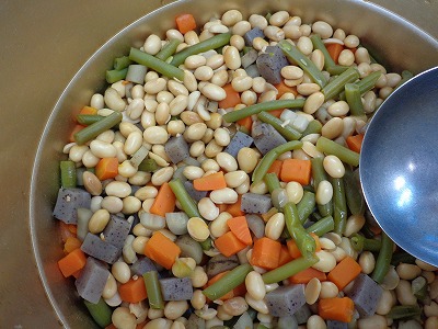 ごぼうやこんにゃくを合わせた五目豆は、お腹の調子を整える食物繊維が豊富な根菜を多く使います。
