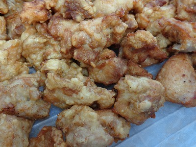 おろし生姜を混ぜた下味用の出汁に鶏肉を漬け込みました。下味がよくなじむよう、1番初めにこの作業を行います。体の成長に欠かせない「たんぱく質」を多く含む鶏の胸肉を使っています。強い筋肉をつくるために欠かせない食べものです。