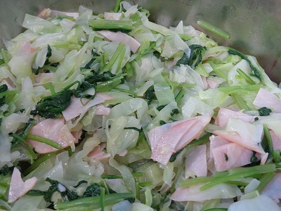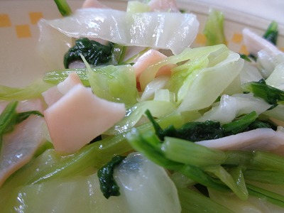 壬生菜の和え物です。サラダやおひたしにする壬生菜は、ほんの少しですがピリッと辛みがあるのが特徴です。