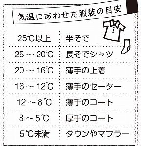 肌着や上着など、気温に合わせた服装を考えて体調管理にお気をつけください。