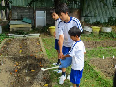 6年生との関わりがまた一つ増えて、一緒に水やりができることを楽しみにしている1年生です。