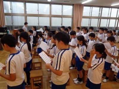 朝の音読で「二十四節季」をざっと全員で唱え、「暦の上では、もうすぐ秋だね」…と確認したものの、体感で秋はまだまだ感じられません。夏の暑さが続く中、夏休み明け、専科授業もスタートしました。