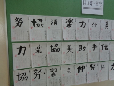 先週、行事も学習も盛りだくさんな2学期を楽しく有意義に乗り切るために、まずは個人目標を「漢字一文字」に込めて設定しました。