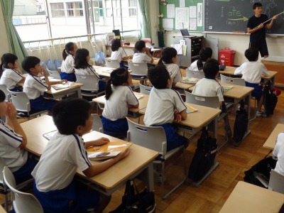 一学期に学習した"There are~"の復習をしたり、歌を歌ったりしました。