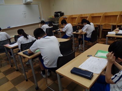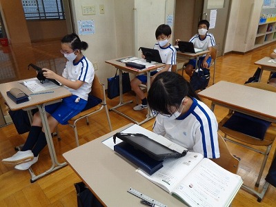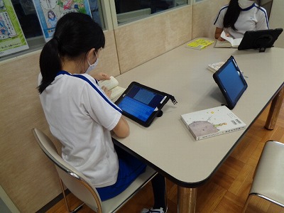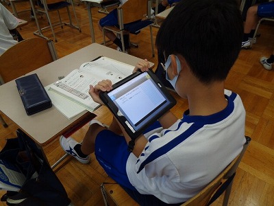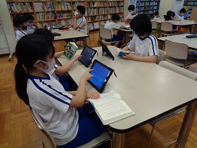 この時間は普段、ほとんどの6年生は自分の好きな本を読んでいるのですが、今日は約半数のメンバーがタブレットを持って、読書感想文の完成に向けて頑張っていました。その熱心な姿から、感想文の力作が期待できそうです。