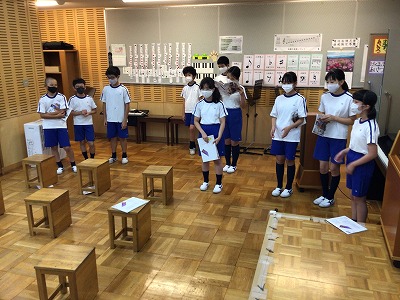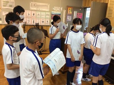 短時間でのグループ練習でしたが、一度合わせてみようと音楽室に集合し、組み合わせて歌ってみることに…