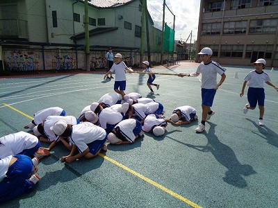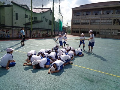 全校練習も、中学年合同体育も、どちらも予定通り、グランドで行うことができましたが、この暑さは予想外です。日があたると、ちりちりと焼かれているような気がしました。