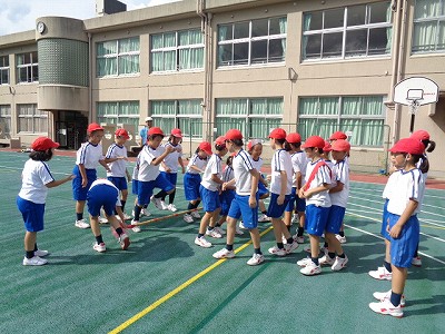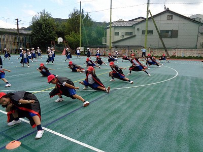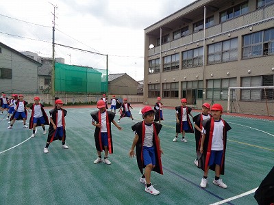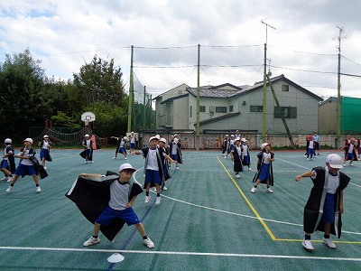 今日の合同体育では、まずは「文教ソーラン」の練習です。台風がまたまた近づき、天候が崩れることを想定し、「今日が最後のグランド練習のつもり!」でがんばりました。