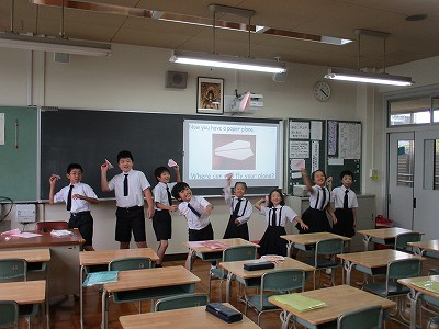 英語の指示をしっかり聞いて、丁寧に工夫して折った紙飛行機。