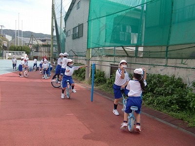 最近の2年生は一輪車に大変興味を持っているので、今日は時間配分を多くして取り組みました。