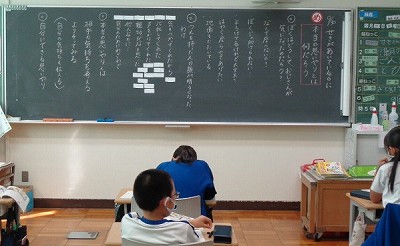 国語は引き続き「ごんぎつね」です。今日は「会話を聞くごんについて」を考えました。第三場面では、兵十がごんのつぐないを「誰がやったのだろう?」と加助に相談する様子が描写されています。その様子をこっそりかげから聞いていたごんの心境について、みんなで意見を出し合いました。