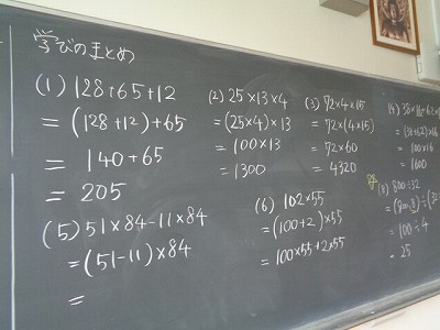 算数では、いよいよ「計算と式の順序」のまとめを行いました。まだまだ定着していない計算問題を、もう一度みんなで練習します。計算の順序のきまりを使って、式を工夫して計算する過程を、しっかり考えながら進めていきました。