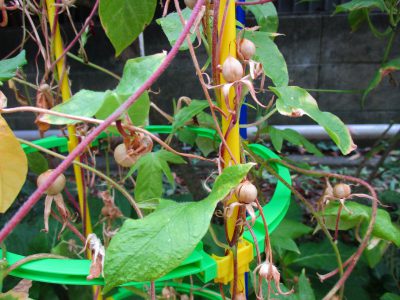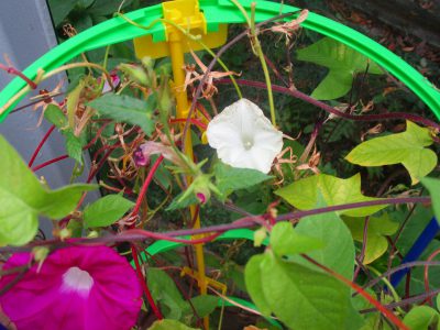 まだまだ花が咲いているあさがおもあり、今日はめずらしい白いあさがおを見ることができました。