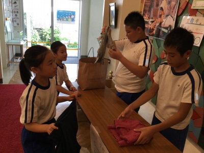 今日は、昨日よりも多くの文教キッズが「古着」を届けに来てくれました。