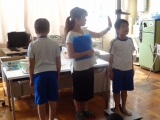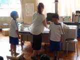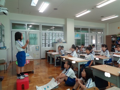 国語科の学習は「夏休み親子新聞」のスピーチ会です。