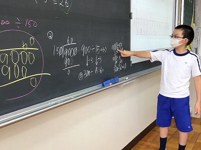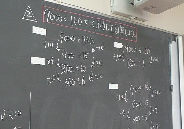 5時間目は算数の授業です。引き続き、2けたでわるわり算の続きを行いました。今日は、わり算の性質をつかって、4桁÷3桁などの大きな数のわり算をしました。
