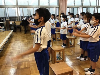 今週も1週間暑さ対策・感染予防対策を意識して過ごしました。教室内での暑さ・涼しさの感じ方に個人差があり、寒く感じる場合、長袖ジャージで調整することをすすめています。体調に気をつけて、良い週末を過ごして下さい。