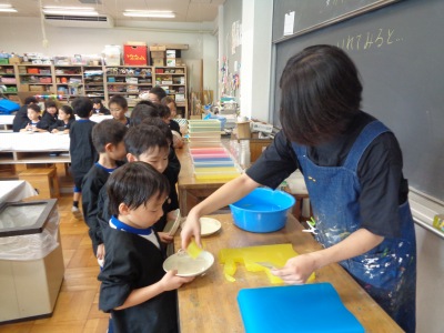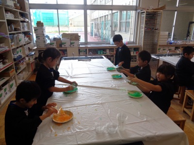 今日の図工は、暑い日にぴったりの「寒天アート」です。