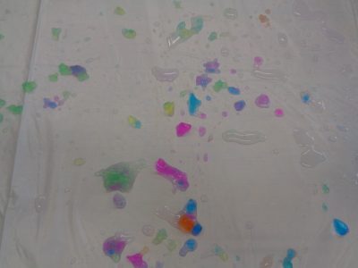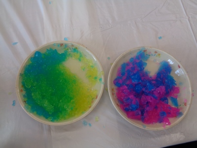 カラフルな寒天の色や形、感触を楽しみながら、きれいな色の世界が広がりました。