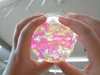 白いシートの上にこぼれてしまった寒天も、とてもきれいでした。
