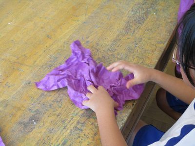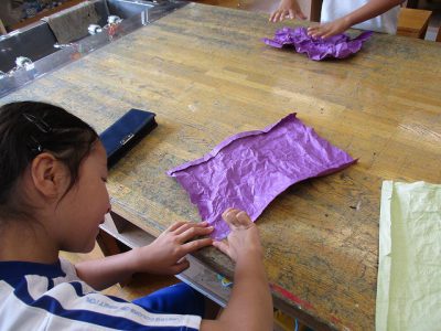 紙をくしゃくしゃにしたり、丸めたりします。