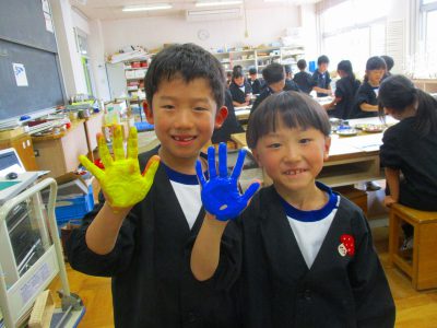9/5火 2年図工「でこぼこ、カラフル、画用紙」