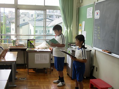 9/6木【理科】 お知らせ 2018/09/06 朝の会の様子です。 昨日の代表委員会で話し合ったことを、学級代表さん二人が報告してくれました。 しっかり記録したノートです。 報告後は、みんなで去年の運動会を思い出しました。 今年の運動会への思いがふくらみます。 ・・・・・・・・・・・・・・・・・・・・・・ 理科は、「こん虫のすみか」の学習です。外に出て、こん虫をさがしました。 学習園では、バッタがすぐ見つかり、おんぶバッタをつかまえた友だちもいました。 他にも、クモやキリギリスなど色々な昆虫を見つけて、 あっという間の理科の学習でした! ←前の記事 お知らせの一覧 次の記事→ 文教トピックス 学年だより1年 学年だより2年 学年だより3年 学年だより4年 学年だより5年 学年だより6年 一覧はコチラ カテゴリー 文教トピックス (200) 文教トピックス (5) 学年だより1年 (160) 学年だより1年 (3) 学年だより2年 (3) 学年だより2年 (160) 学年だより3年 (3) 学年だより4年 (3) 学年だより5年 (3) 学年だより6年 (3) 文教小ニュース (4,428) お知らせ (1,004) イベント (12) 入試関連 (13) 2024年度 (1,063) 文教トピックス (198) 学年だより1年 (172) 学年だより2年 (170) 学年だより3年 (171) 学年だより4年 (177) 学年だより5年 (175) 2023年度 (878) 文教トピックス (204) 学年だより1年 (165) 学年だより2年 (167) 学年だより3年 (169) 学年だより4年 (173) 2022年度 (738) 文教トピックス (216) 学年だより1年 (174) 学年だより2年 (174) 学年だより3年 (174) 2021年度 (571) 文教トピックス (217) 学年だより1年 (177) 学年だより2年 (177) 2020年度 (455) 文教トピックス (249) 学年だより1年 (206)
