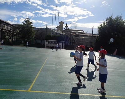 ドッジボールで体を動かす子がたくさんいました。