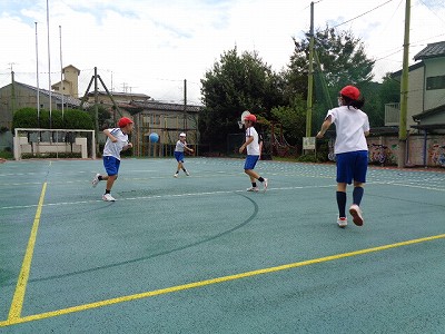 今日の昼休みは、みんなあそび係さんがドッジボールを企画してくれたので、みんなでドッジボールを行いました。ルールを守って、楽しく遊びました。