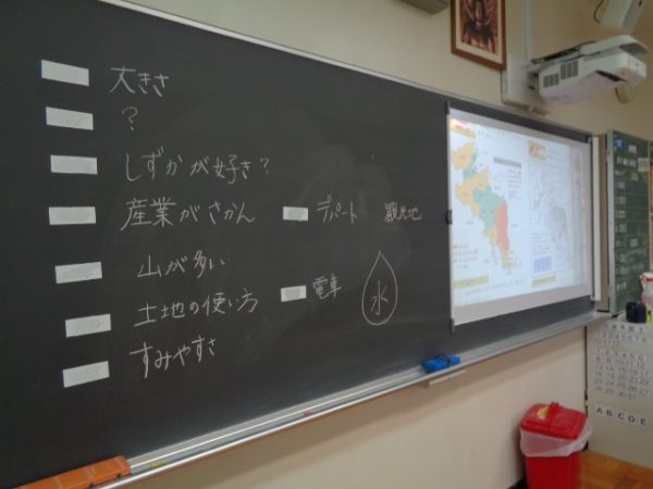 6時間目は社会でした。今日から、わたしたちの京都府について扱いきます。京都の人口の分布には、どのような特徴があり、何と関係しているのだろうという予想を立てました。山が多いこと、観光地が多いことなど、いろいろな予想が出てきました。