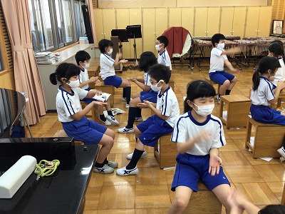 お手本の音楽は一回目より二回目が、ぐんと速く演奏されます。バッチリの動きには、もう少し時間が必要なようです。