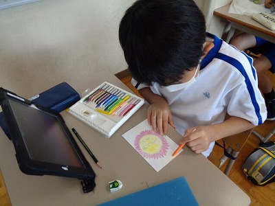 6年生の大部分は、絵をメインとした絵手紙に取り組んでいます。