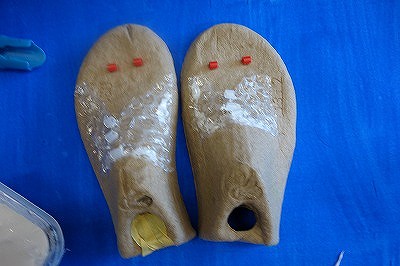 この児童も、自分で準備した,買った靴の中に詰め物として入っていた厚紙からひらめいたそうです。これからひらめいたのは,なんと先生なんだそうです。そう言われてみれば顔の形にも見えます。