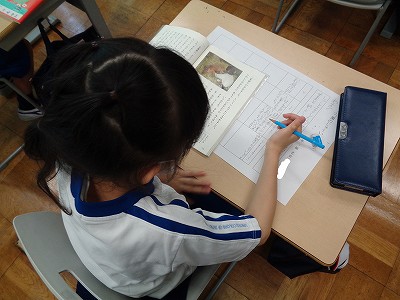 今日は,ビーズを使いたくなった児童が多く,やや学習のめあてから離れてしまった場面も見られたので,来週もう少しおさらいをしてから、次の学習を進める予定です。