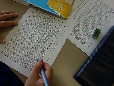 まずは200字の小さな原稿用紙にまとまりごとに書いています。1つのまとまりが書き上がると「先生、これどう思いますか?」と見せにきます。
