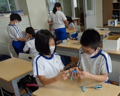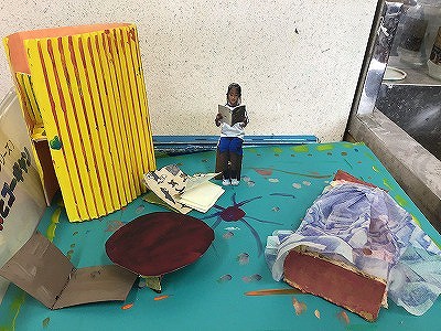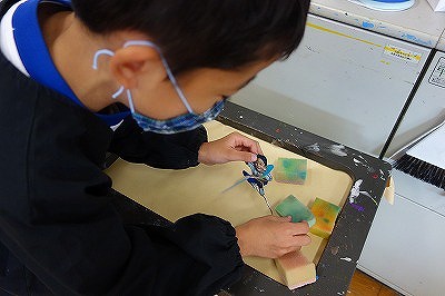 3・4校時は「小さな自分のお気に入り」の続きでした。「小さな自分」が気に入った場所に働きかけ,さらにより快適に変えていく活動です。造形室にある様々な材料を取捨選択しながら,自分が扱えるもの,思いに合ったものを選択しながら進めていきました。