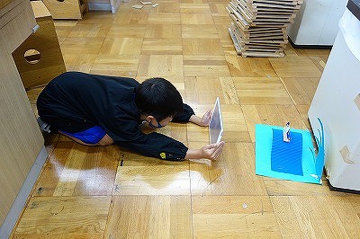 変化させた場所に「小さな自分」も設置して,よりよいアングルで写真を撮ります。