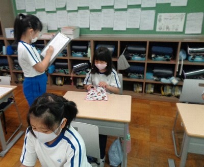 チェック後は、みんなに結果報告。ハンカチを忘れずに学校生活を送る習慣が定着しています。