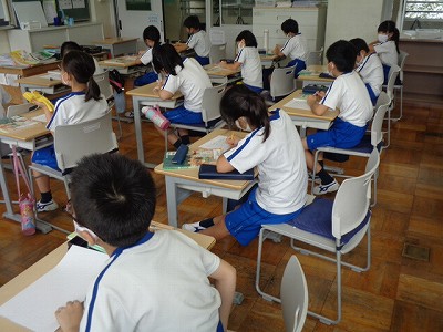 教室では、ふりかえりを行い、文章でまとめました。