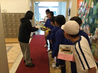 礼拝の朝なので、中間休みに集合するボラ隊メンバーを待ち構えていたみんなが、ポストや募金箱に入れてくれる姿に、準備したボラ隊メンバーは大変嬉しく、また心強く感じています。