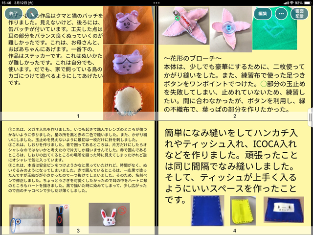 後半は、3週にわたって活動した“手縫いで小物づくり”を報告する時間です。
