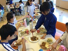 「和」の部屋では、給食メニューの「豚肉の生姜焼き」の横に添えて、おいしくいただきました。
